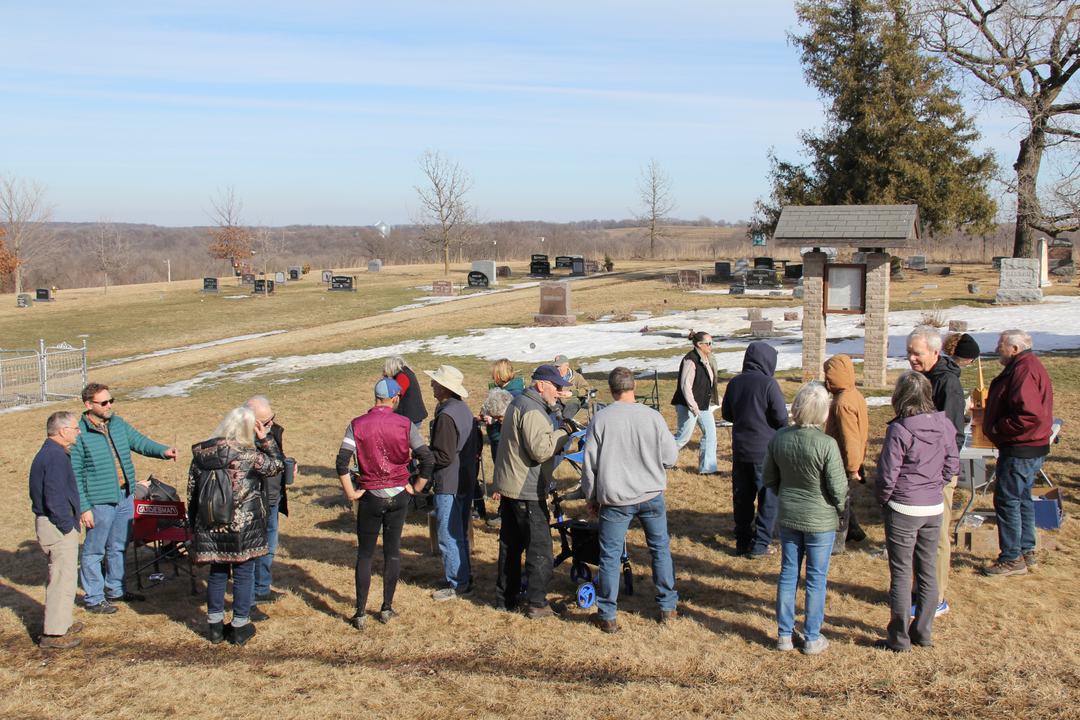 People gather on February 15 for a Doughnut Hole Roasting Party at Valley Grove. (Minnesota Prairie Roots copyrighted photo February 2026)