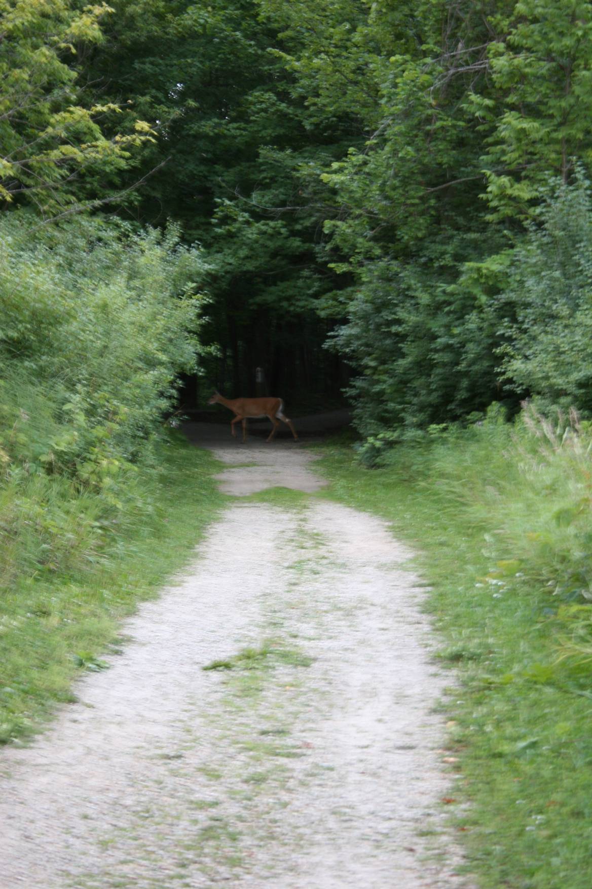 Walking along the mown path that slices through the tall, waving prairie grasses and wildflowers, we spot the deer. First one. Then another. And finally, two maturing fawns. They have seen us too and are momentarily paralyzed, alert to danger.