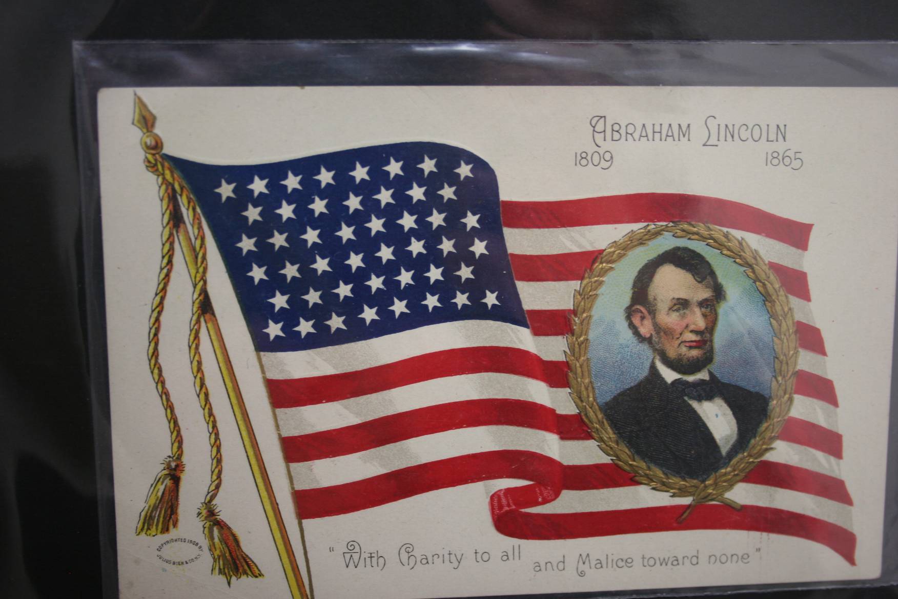 A 1909 postcard celebrates Abraham Lincoln's February 12, 1809, birth.