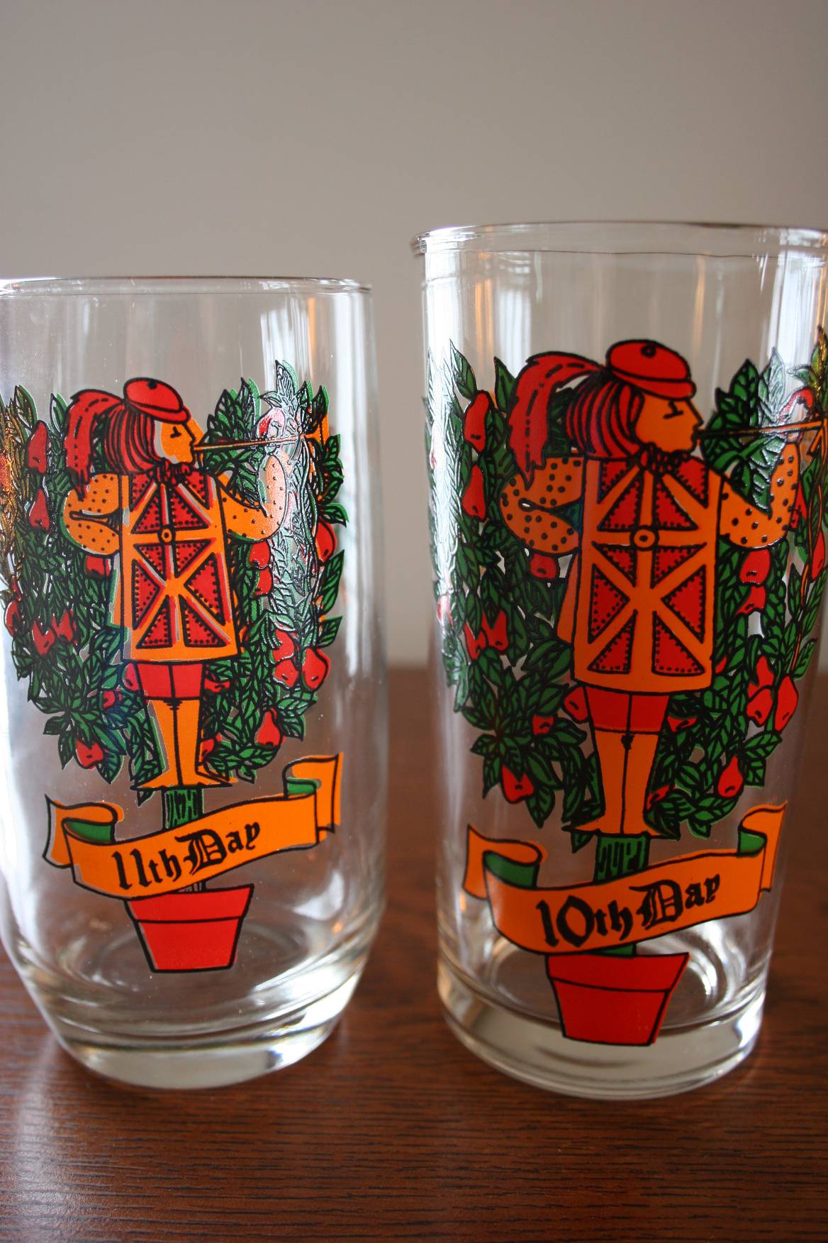 The glass on the left is correctly printed with a pied piper on the 11th day of Christmas. The other glass, however, places a piper on the 10th day instead of a leaping lord.