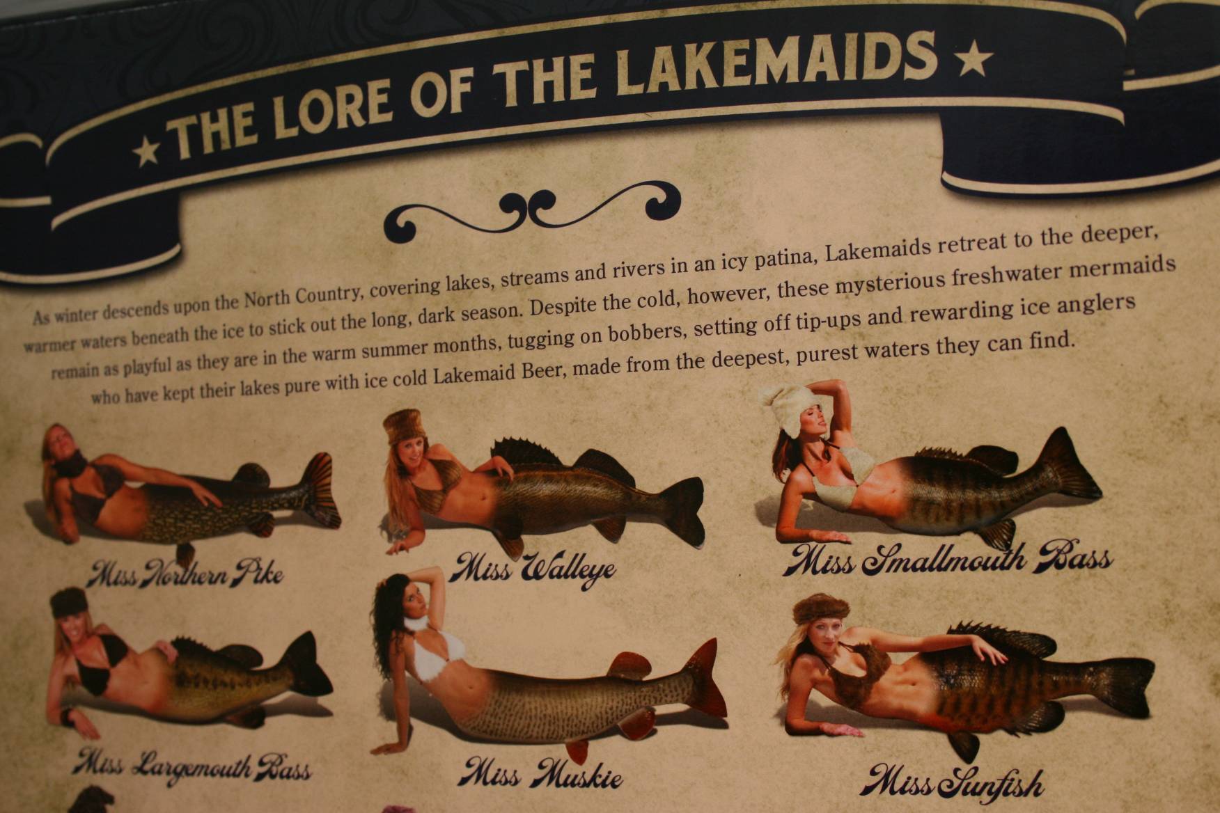 Credit for the Lakemaid idea goes to the Twin Cities advertising firm of Pocket Hercules, which drew its inspiration partly from the legend of freshwater mermaids and from the Rainy Lake Mermaid sculpture positioned on a rock in the middle of Rainy Lake, according to the official Lakemaid Beer™ website, www.lakemaidbeer.com.