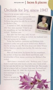 But for me, Ivy will always be defined by an orchid and by her husband’s loving words, “I don’t think I could have ever found a better one (wife).”