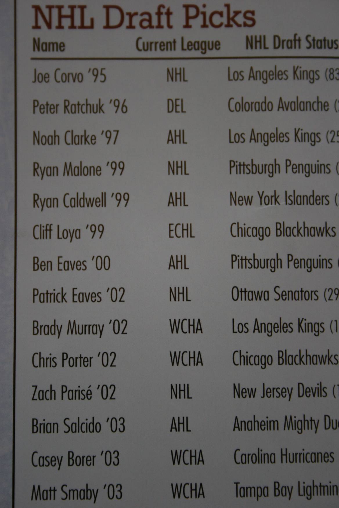 The booklet includes a list of 36 former Shattuck hockey players who became National Hockey League draft picks. Recognize any names?