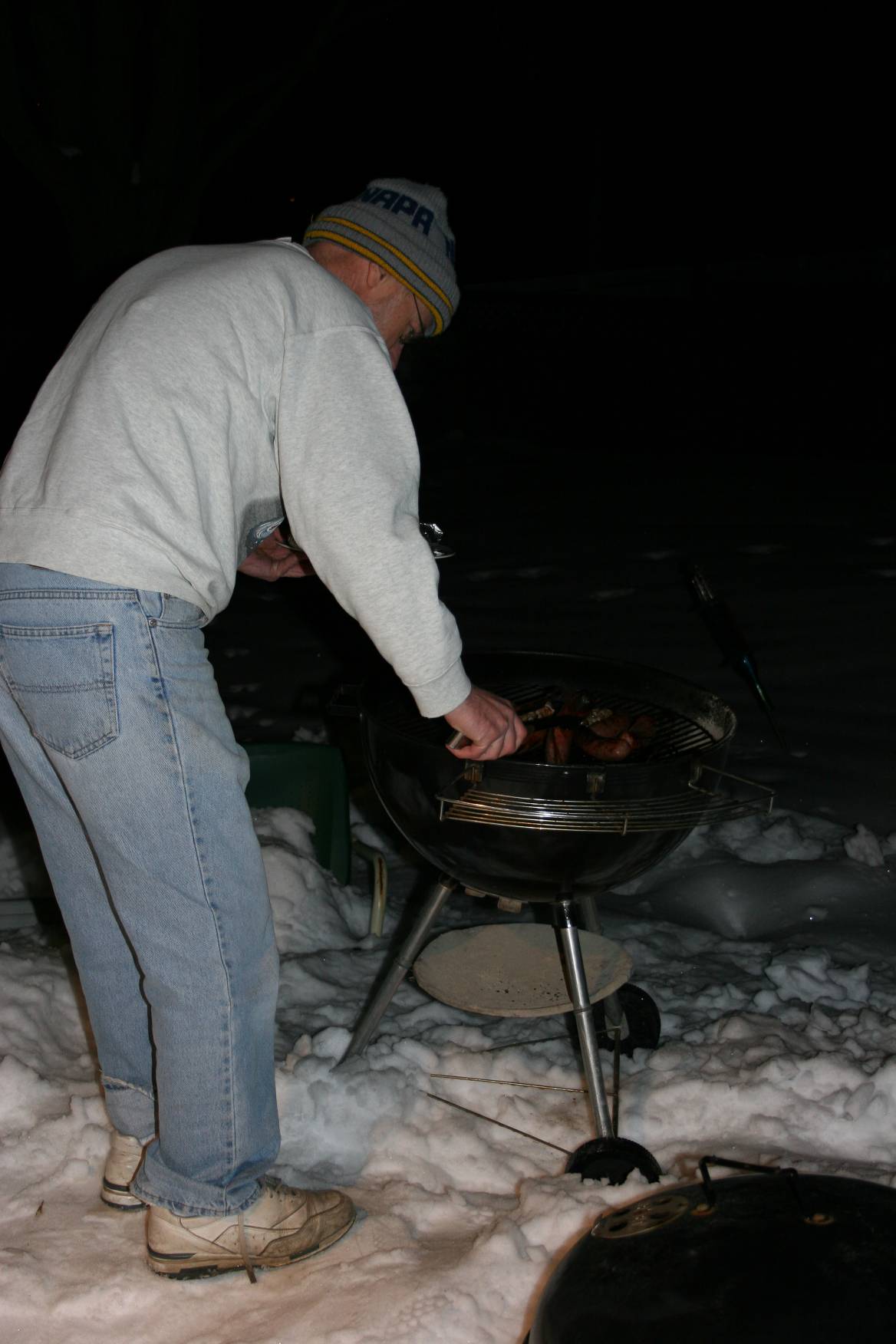 “Would it be safer to sit more towards the middle?” I ask. So we move up and over, parking ourselves on a warm cement bench/step directly behind four Breck School fans.