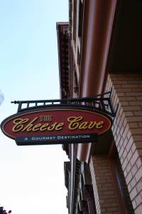The Cheese Cave is housed in a beautifully-restored building in downtown Faribault. The interior, with an arched ceiling and sandstone-colored walls, mimics the caves where Faribault Dairy ages its cheeses.