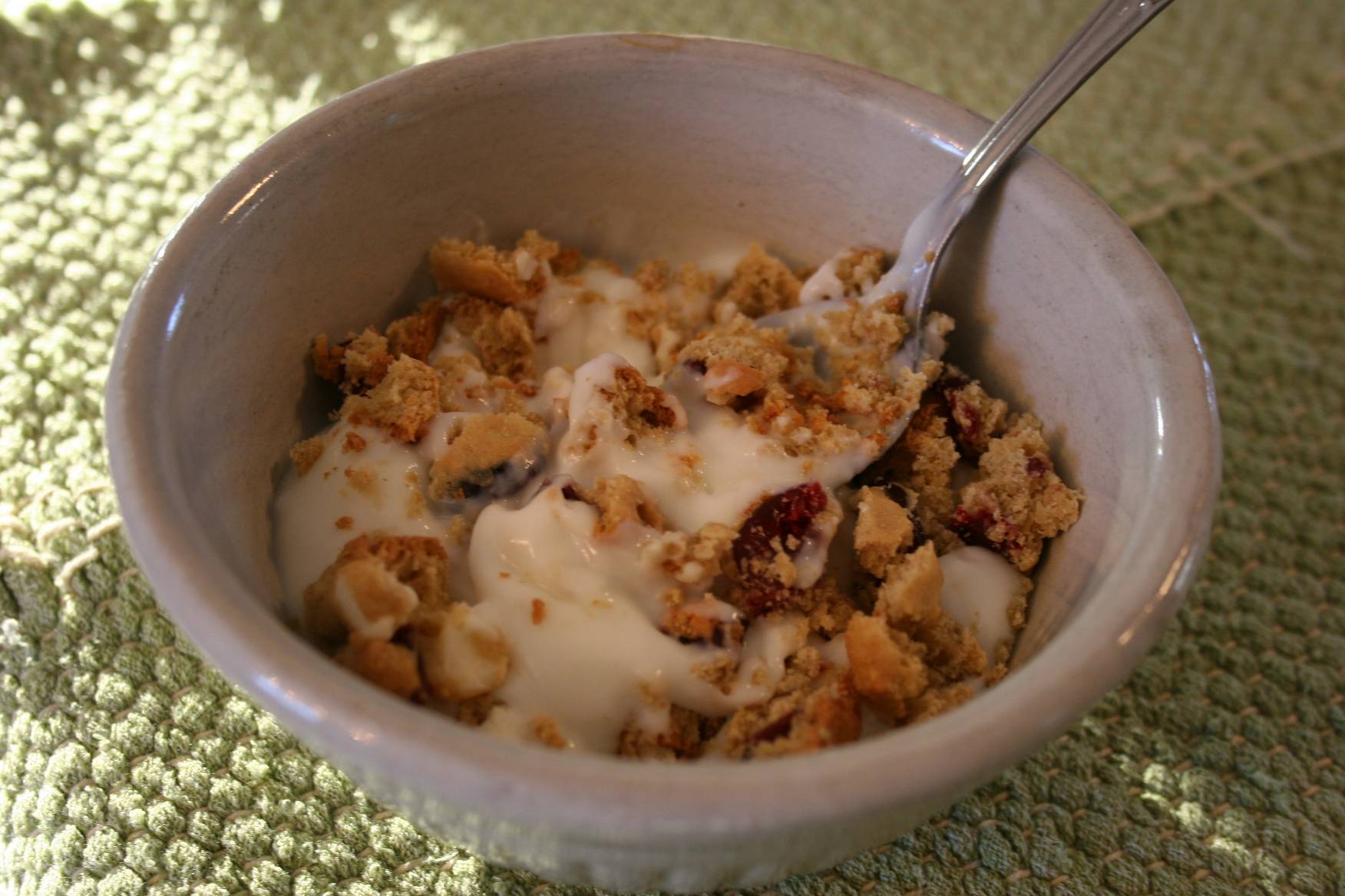 Looks healthy. Seems healthy with the rolled oats, cranberries and dairy product. Yup, that’s good enough for me.