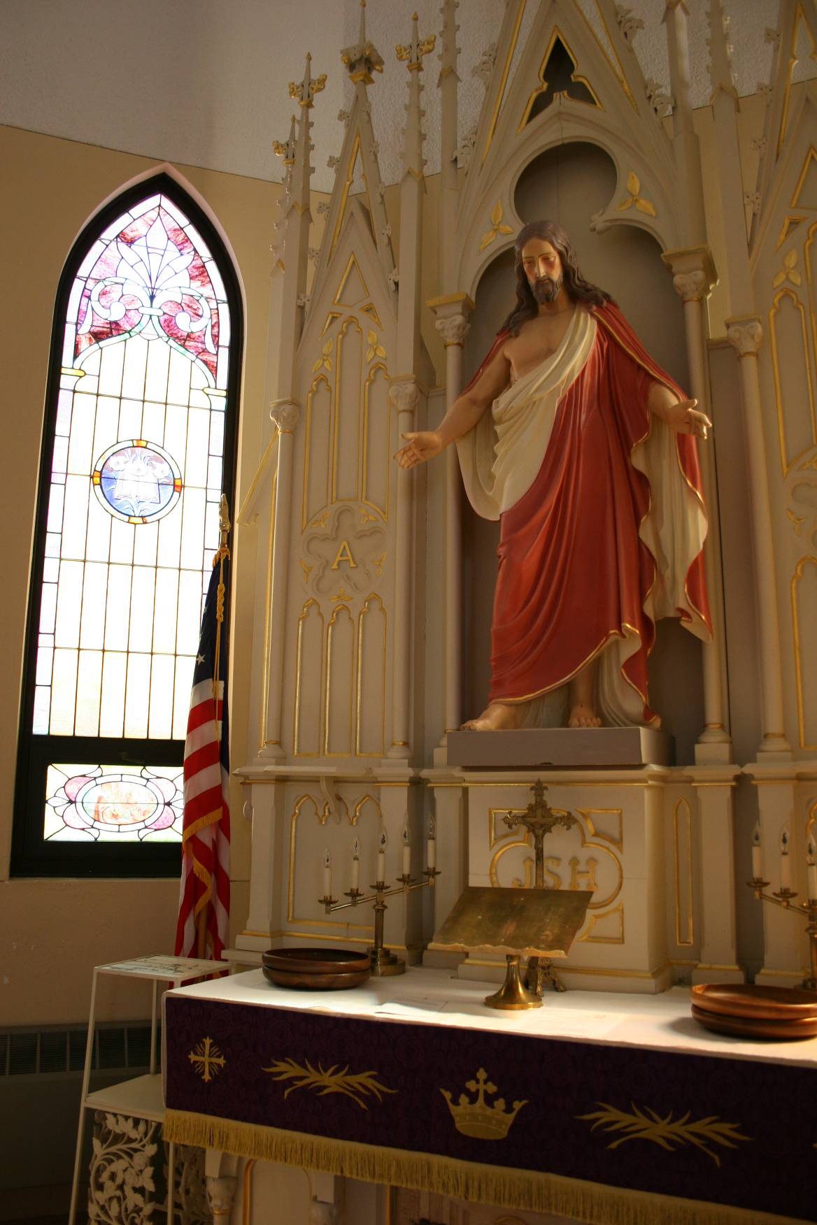 The ornate altar and the statue of Christ are similar to the ones that once graced my childhood church in Vesta, Minnesota.