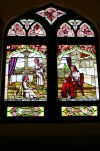 Friedens' German heritage is reflected in this stained glass window, which translates, "My help comes from the Lord who made heaven and earth."