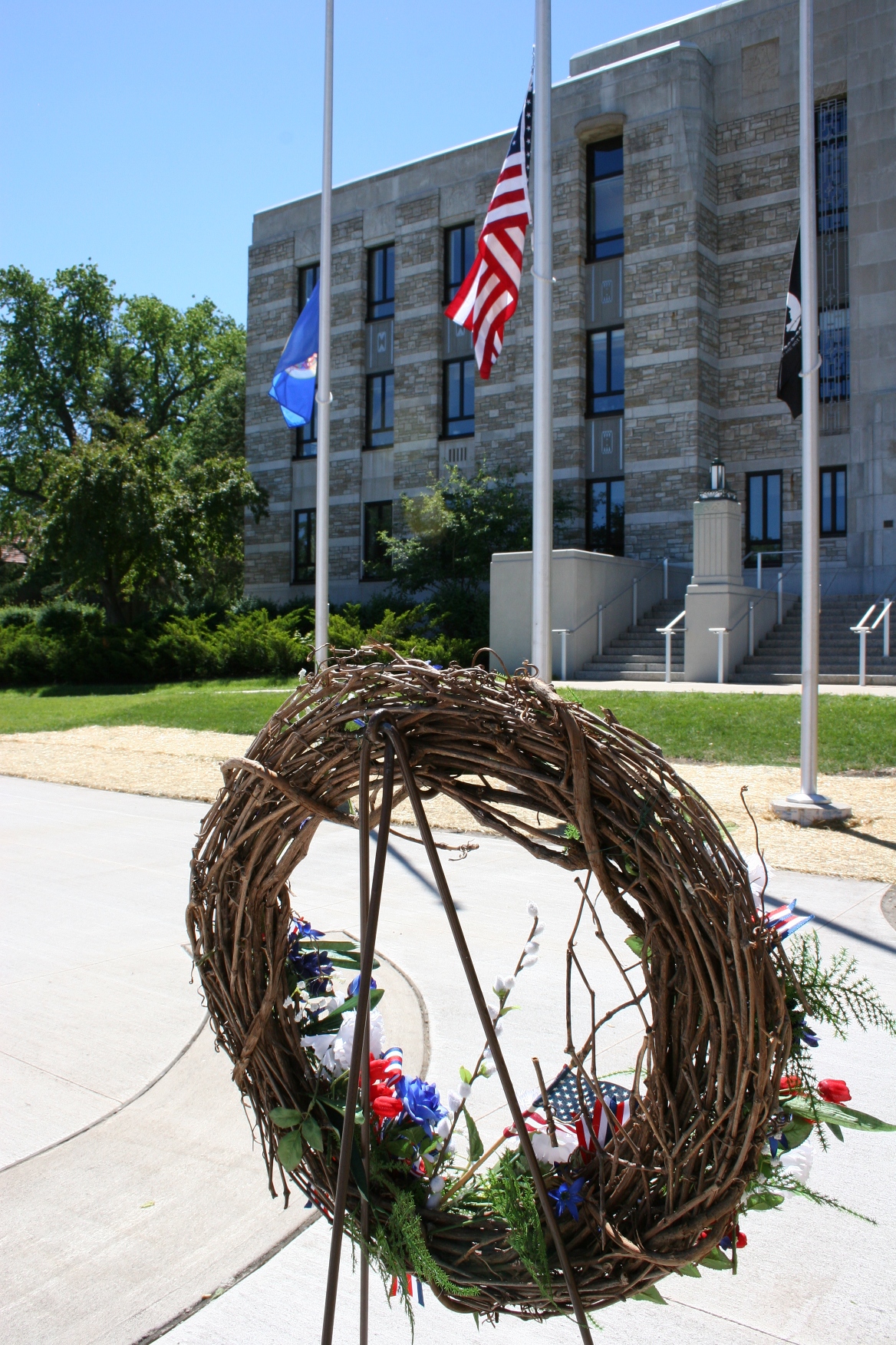 A wreath rests on the plaza of the Rice County Veterans' Memorial which is expanding from the Civil War Monument which has long graced the courthouse grounds.