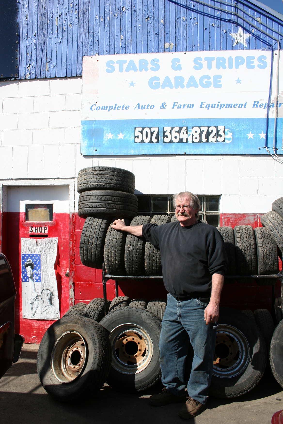 Drive through the tiny Le Sueur County burg of Heidelberg and you’ll find a smattering of houses, St. Scholastica Catholic Church and a bar. And next to that bar, you can’t miss the Stars & Stripes Garage owned by Joel Kukacka.