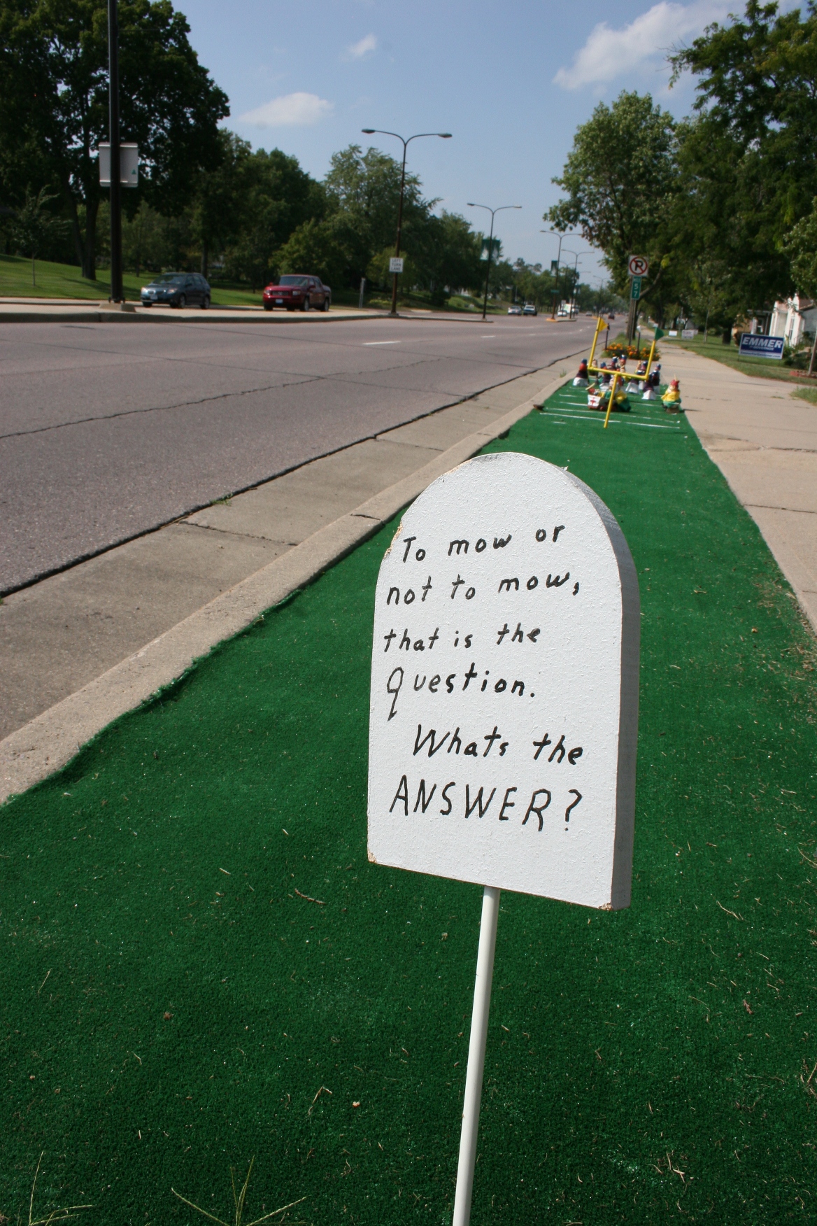 AT THE END of the football field, I discovered this sign: “To mow or not to mow, that is the question. Whats the answer?”