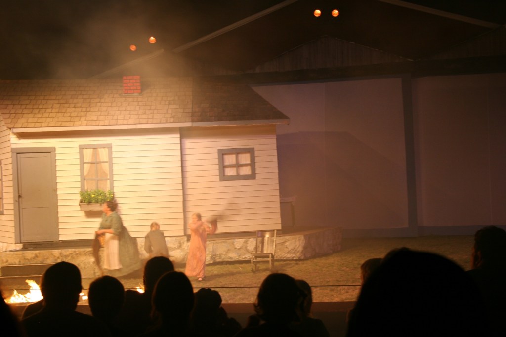 A prairie fire scene from the Laura Ingalls Wilder Pageant, presented recently at an outdoor amphitheater on a hillside amphitheater along the banks of Plum Creek near Walnut Grove.