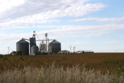 Approaching Pemberton from the east, the grain elevator and bins mark the skyline.
