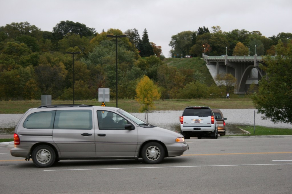 Some motorists pulled off Minnesota Highway 60 near the viaduct to photograph floodwaters and Boston’s Restaurant.