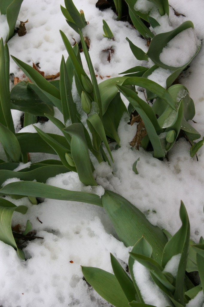Wasn’t I suggesting that I pick up romaine lettuce at the garden shop and plant it? But my husband stopped me, warned me that temps could still drop to freezing. I listened, for once. Thankfully. But he didn’t say anything about snow. Oh, no, not snow.