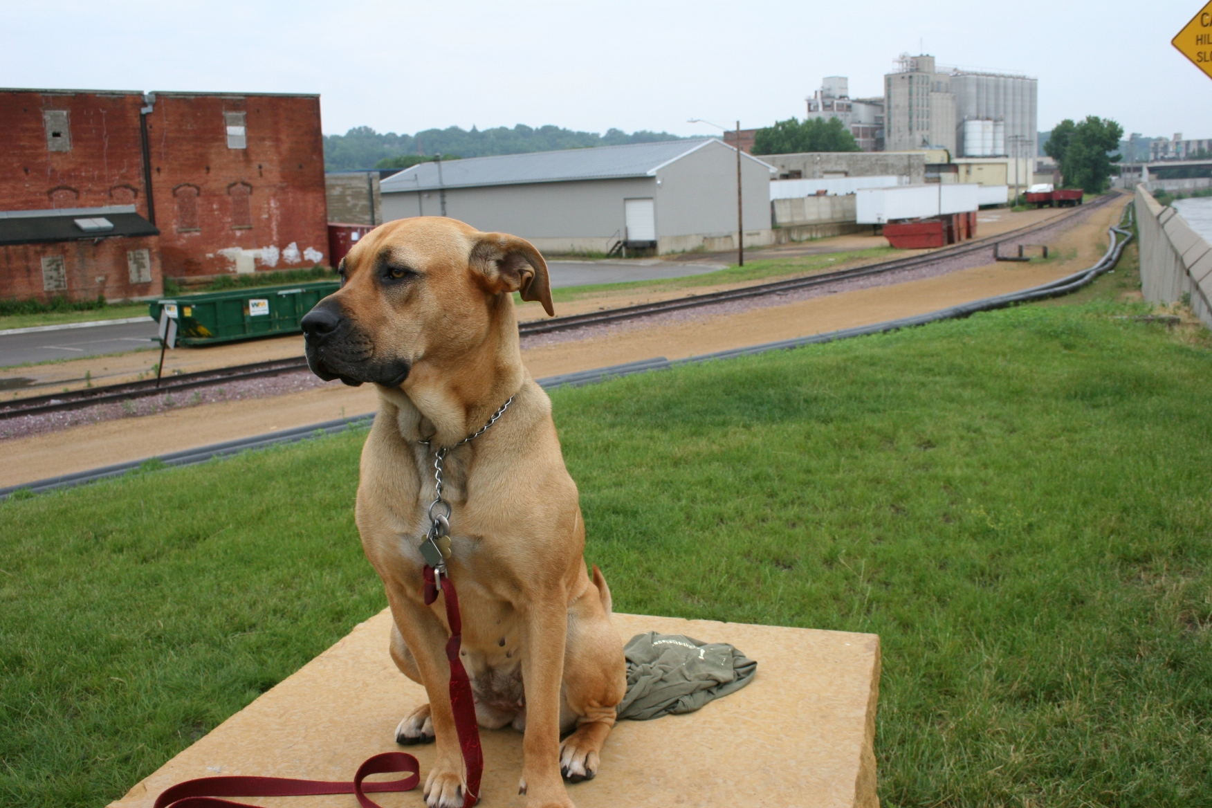 But I don’t pry, and only he—the guy with the Keystone Ice—volunteers any information, speaks to me after I approach the trio because I see a photo opportunity in a man and his dog, brick buildings and a riverside railroad track. My eyes sweep across the scene, pushing the view into the lens of my camera, into these images that tell a story.