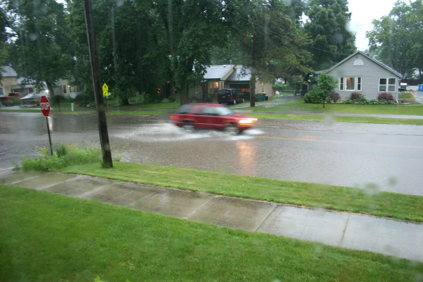 Entering Belview from Sacred Heart at 9 a.m. on July 2, the morning after the tornado. Photo courtesy of Merlin and Iylene Kletscher.