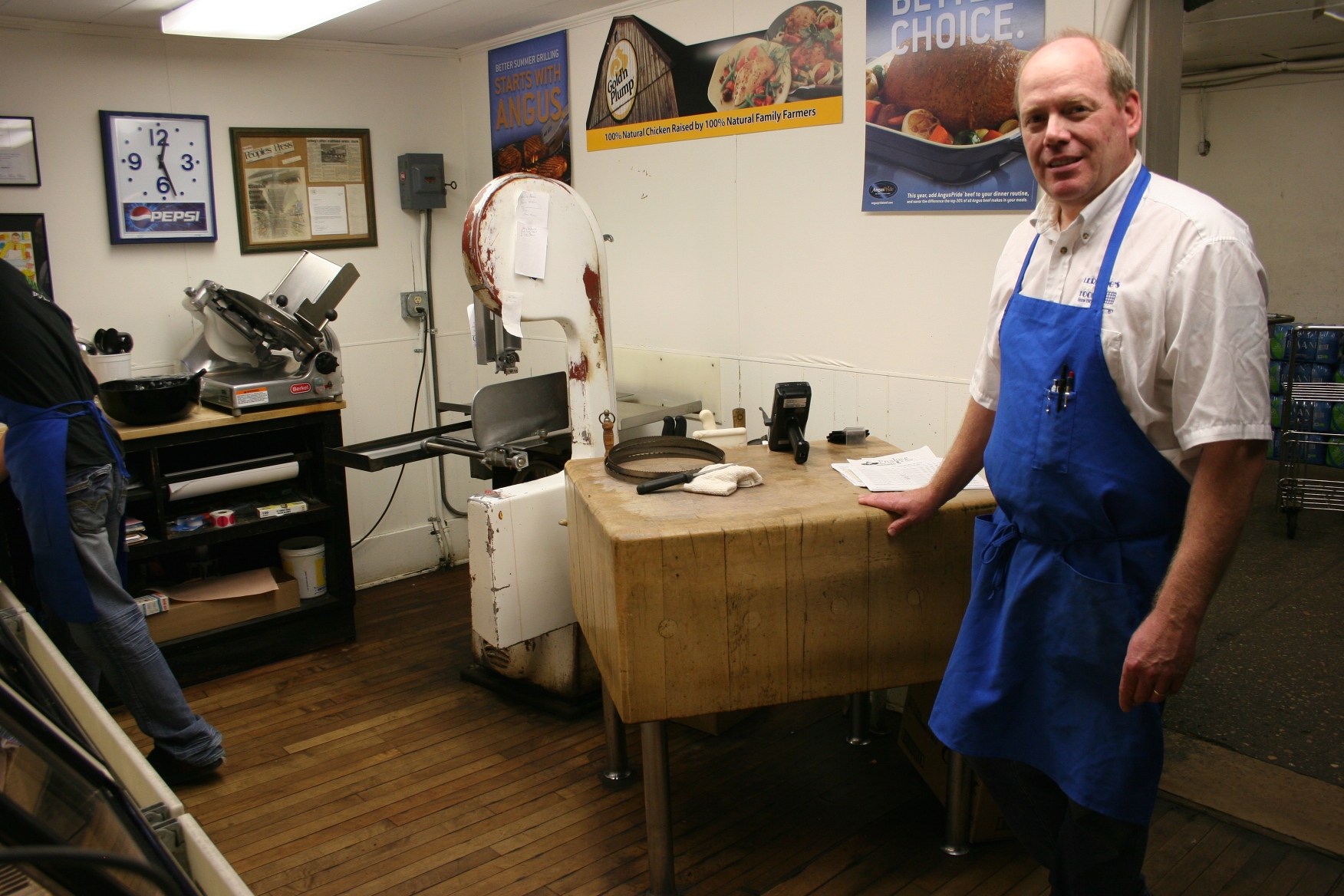 He’ll point out the store’s original coffee grinder resting on a shelf above the dairy section or direct your attention to the original wooden butcher block back in the meat department and still in use today (grandfathered in, he says).