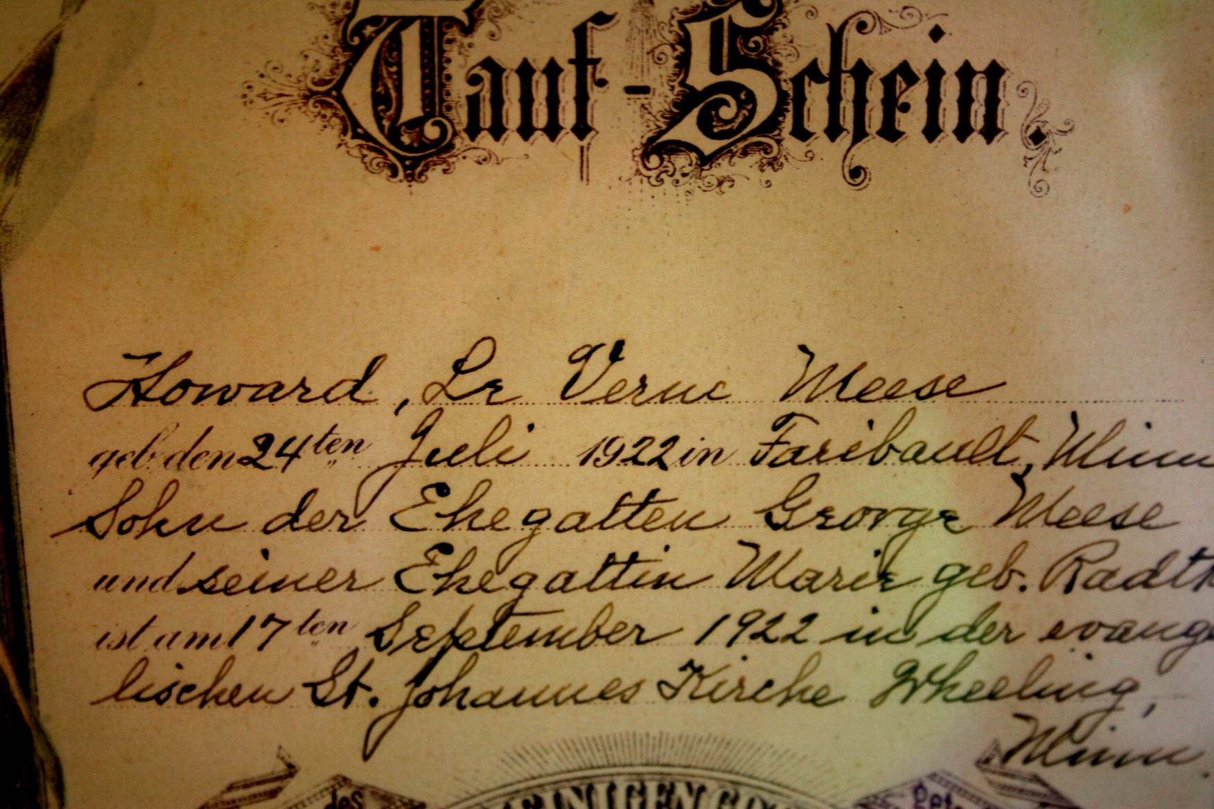 I DON’T KNOW how many Germanfest attendees paused to examine the German books and documents displayed in the church narthex. But I’m always interested in such items because not only am I 100 percent German and interested in “old stuff,” but I once considered majoring in German in college (which means I would not have become a writer; I think I made the right choice).