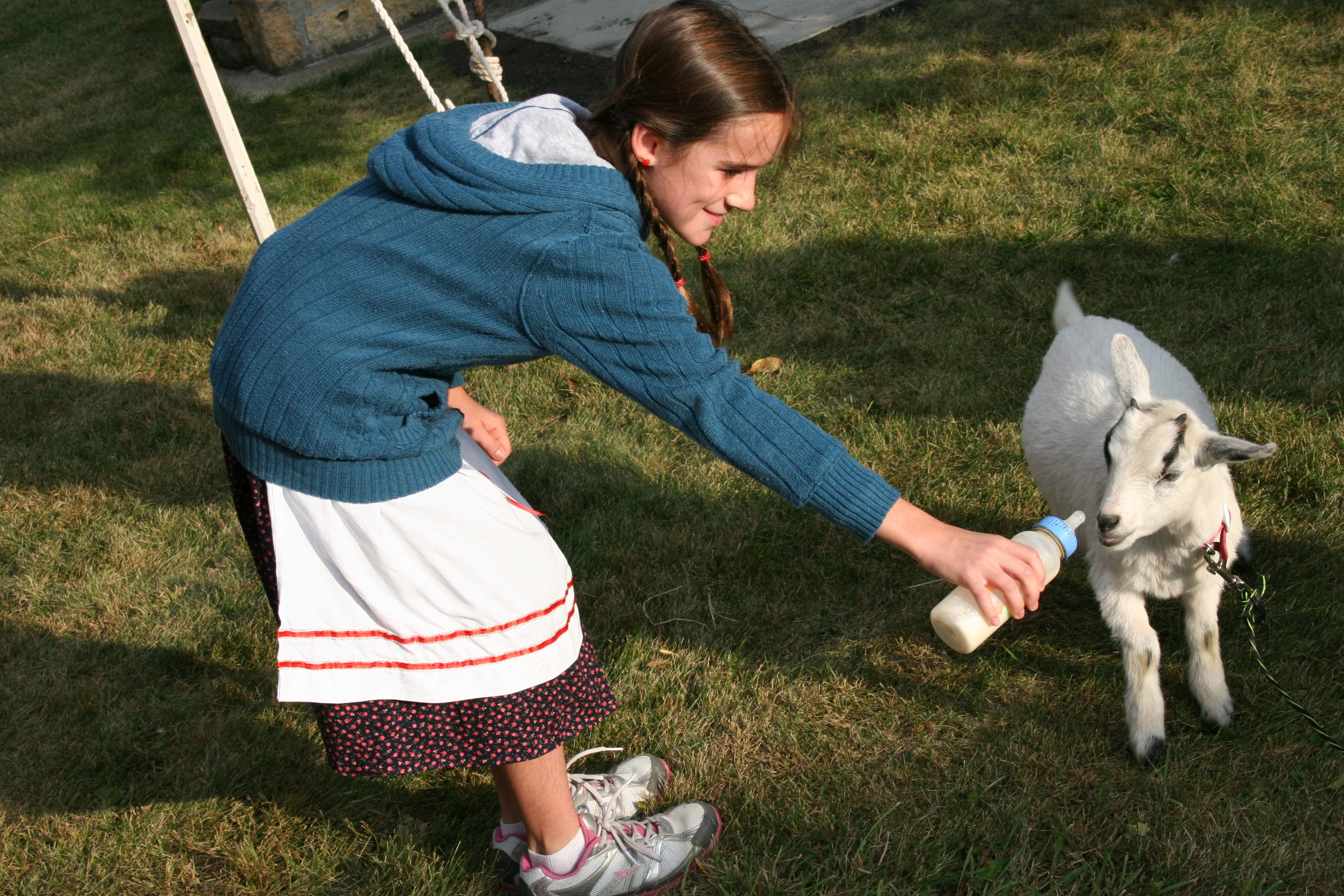 Then along came Kassandra, Kim’s daughter, with a bottle of milk. The goat, which apparently wasn’t all that hungry, didn’t seem too interested in drinking. But Kassandra pursued the goat and I pursued the goat and Kassandra until we both got what we wanted: her the goat, me the photo.