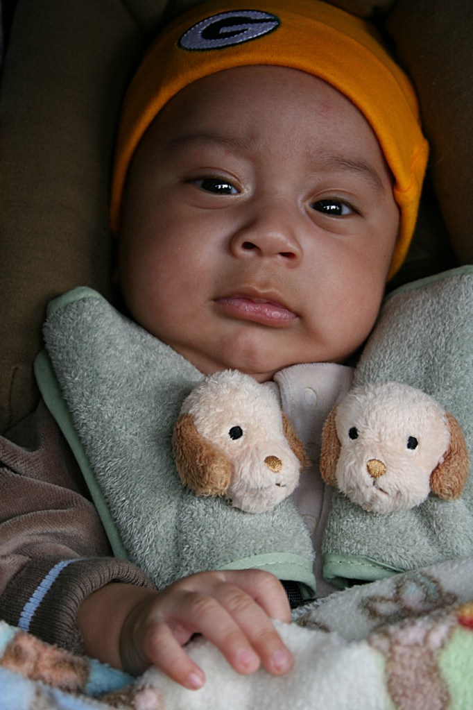 At several months old, baby Leo is already a Green Bay Packers fan.