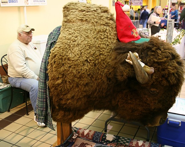 Over at the Downtown Appleton Farm Market in City Center, a vendor marketed bison meat. Now I'm wondering, is that bison head real and how do you cart that around?