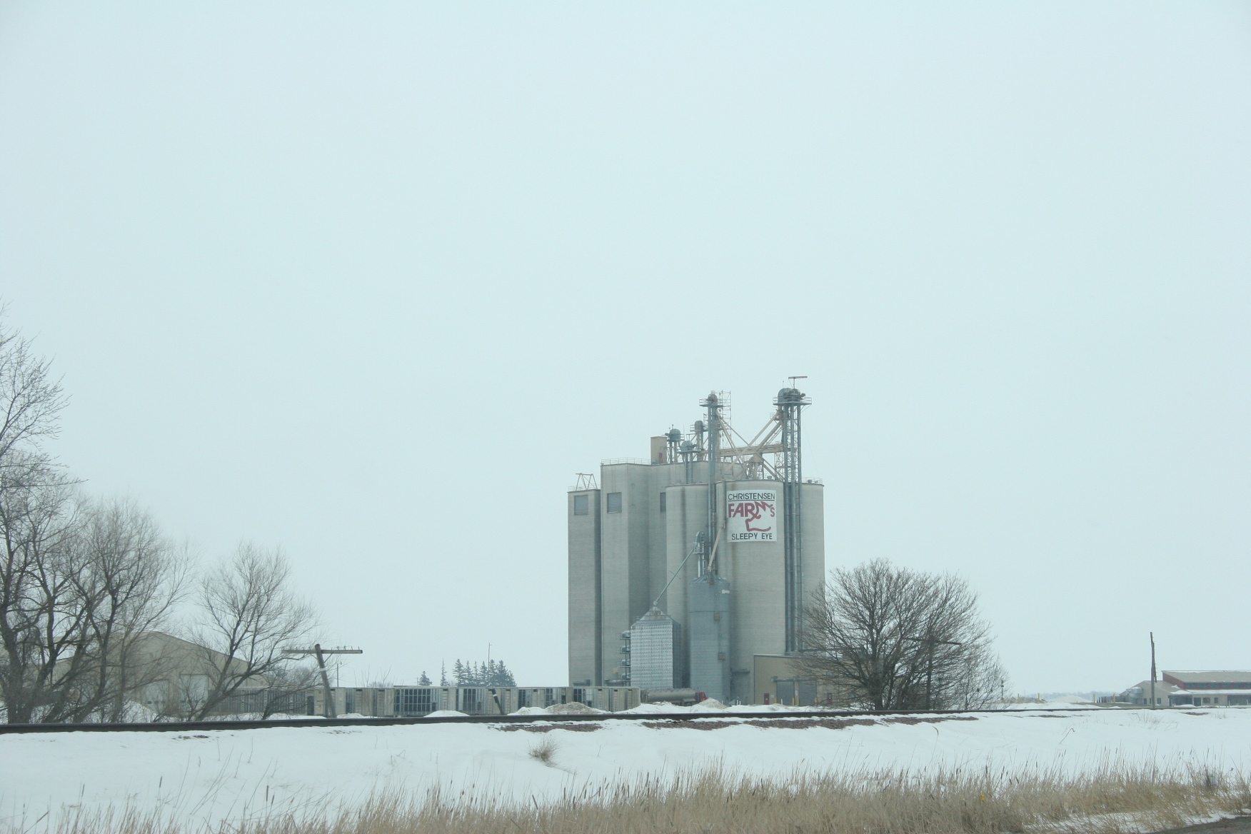 Even in rural Minnesota, vertical lines occasionally break the horizon, like this scene at Christensen Farms along U.S. Highway 14 east of Sleepy Eye in southwestern Minnesota.