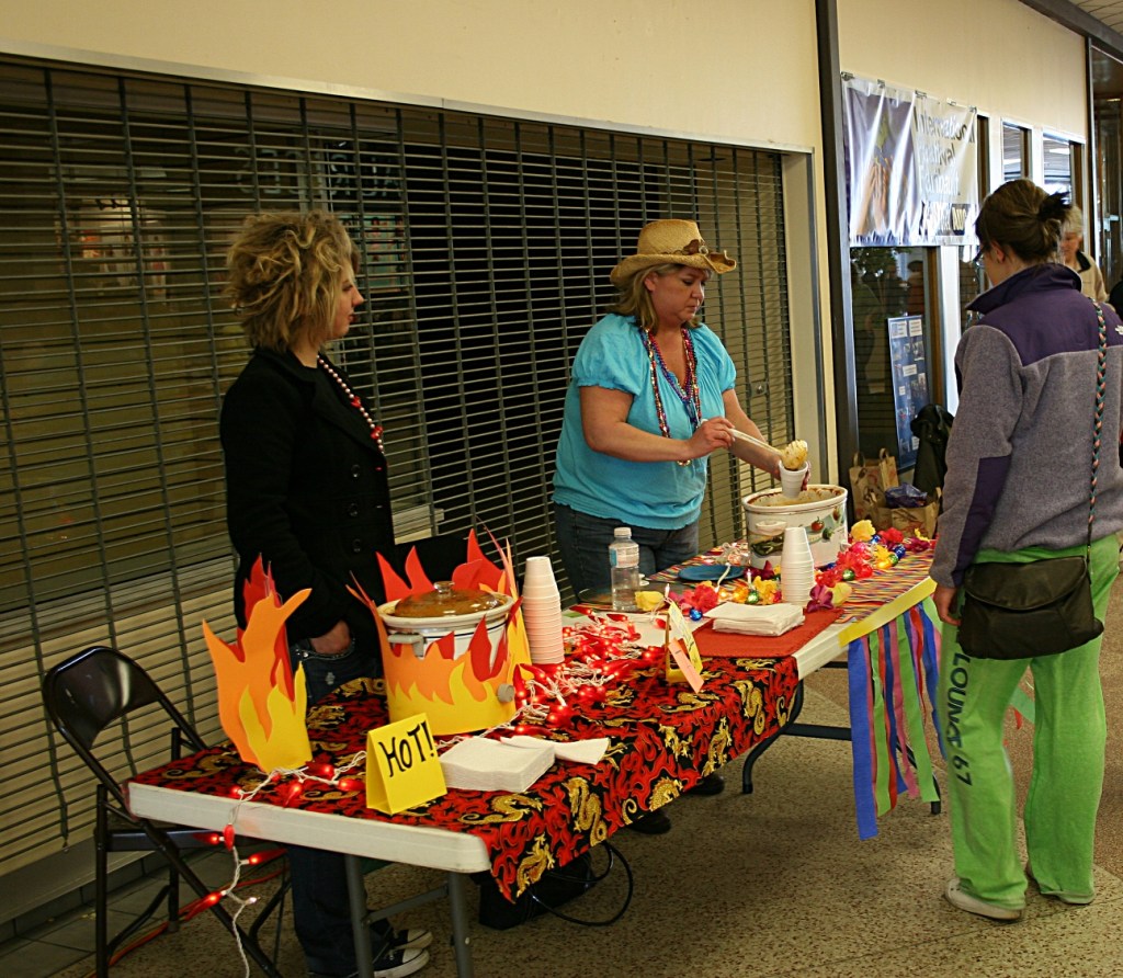 Faribault residents Hannah Plath, left, and her mom, Kristen Langmeier, served two types of chili. Entries were judged on taste and presentation.