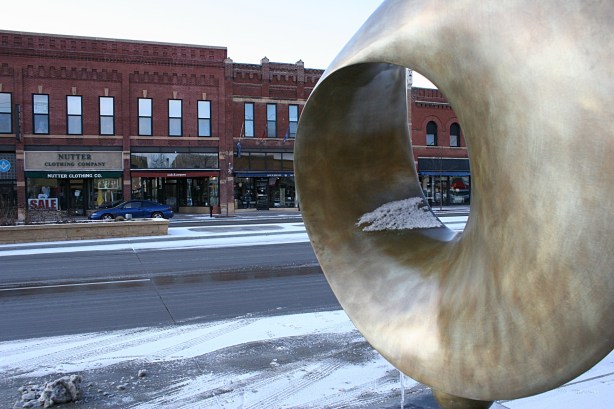 This sculpture sits in front of the Arts Center of Saint Peter along South Minnesota Avenue/U.S. Highway 169 in St. Peter. The downtown is graced by historic buildings like these across the street from the Arts Center.