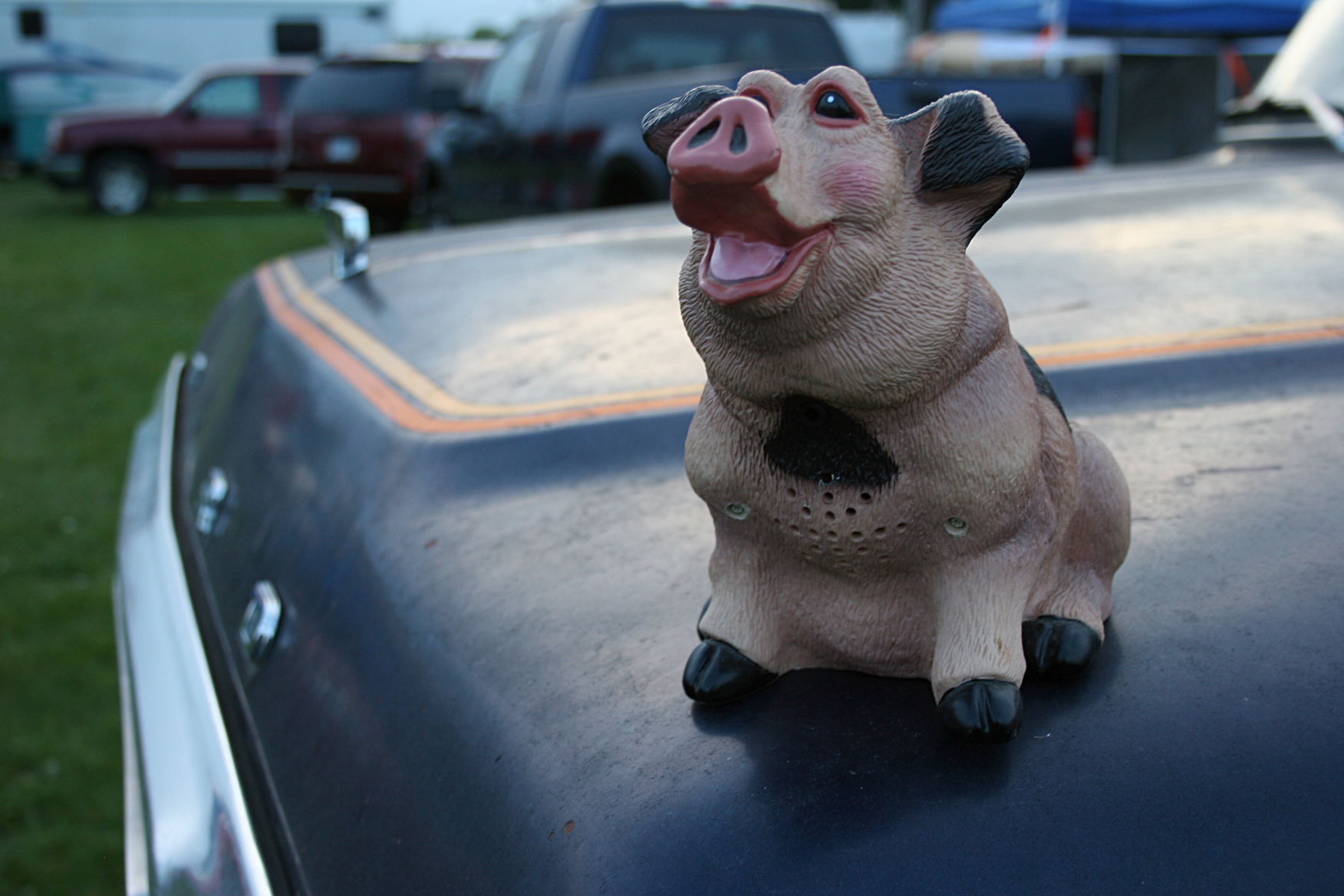 A pig on a vintage Ford pick-up, placed their by the team of two brothers and childhood friends originally from East Grand Forks, Minnesota.