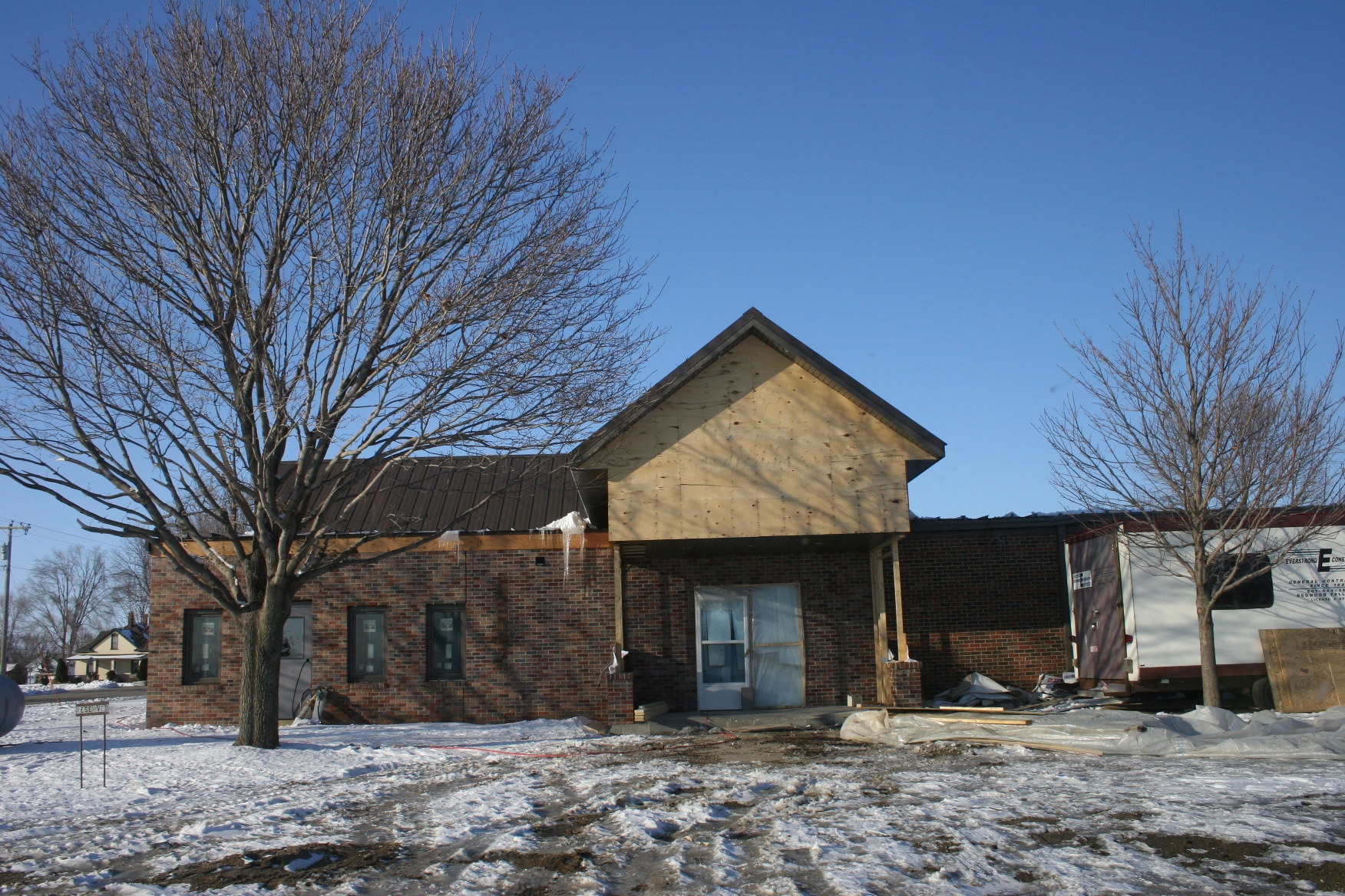 During the late afternoon of July 1, 2011, a series of downbursts with wind speeds of 90 – 100 mph swept through Vesta, ripping half the roof from St. John’s sanctuary, felling trees, denting grain bins, damaging the landmark grain elevator and more.