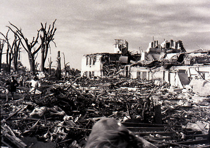 A photographer for the Tracy Headlight Herald captured this scene at the demolished Tracy Elementary School.
