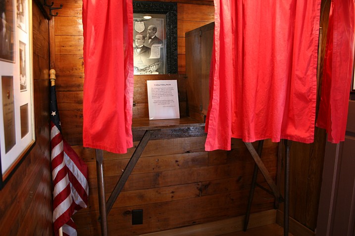 And if you could peek over their shoulders, would you to see how those in the Meriden area voted? This folding polling booth was patented in March of 1892 making it first available for the Presidential election that same year. The polling booth was used at the Meriden Town Hall until 2009. Until 2009, people.