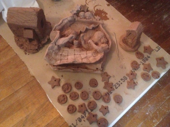 This photo, courtesy of Felice Amato, shows houses and quilters in progress for Swede Hollow.