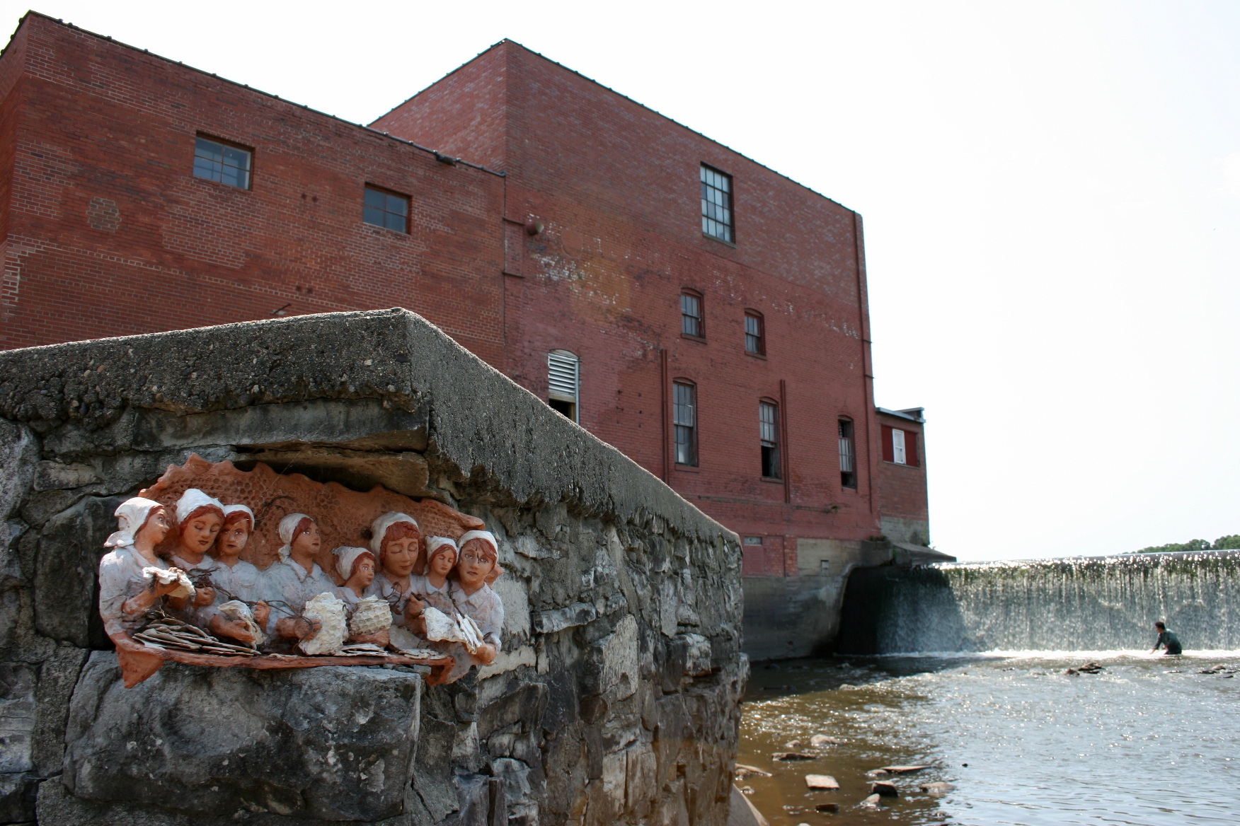 “Seamstresses” in place at the historic Faribault Woolen Mill along the Cannon River blends seamlessly into its environment. Photo by Audrey Kletscher Helbling.