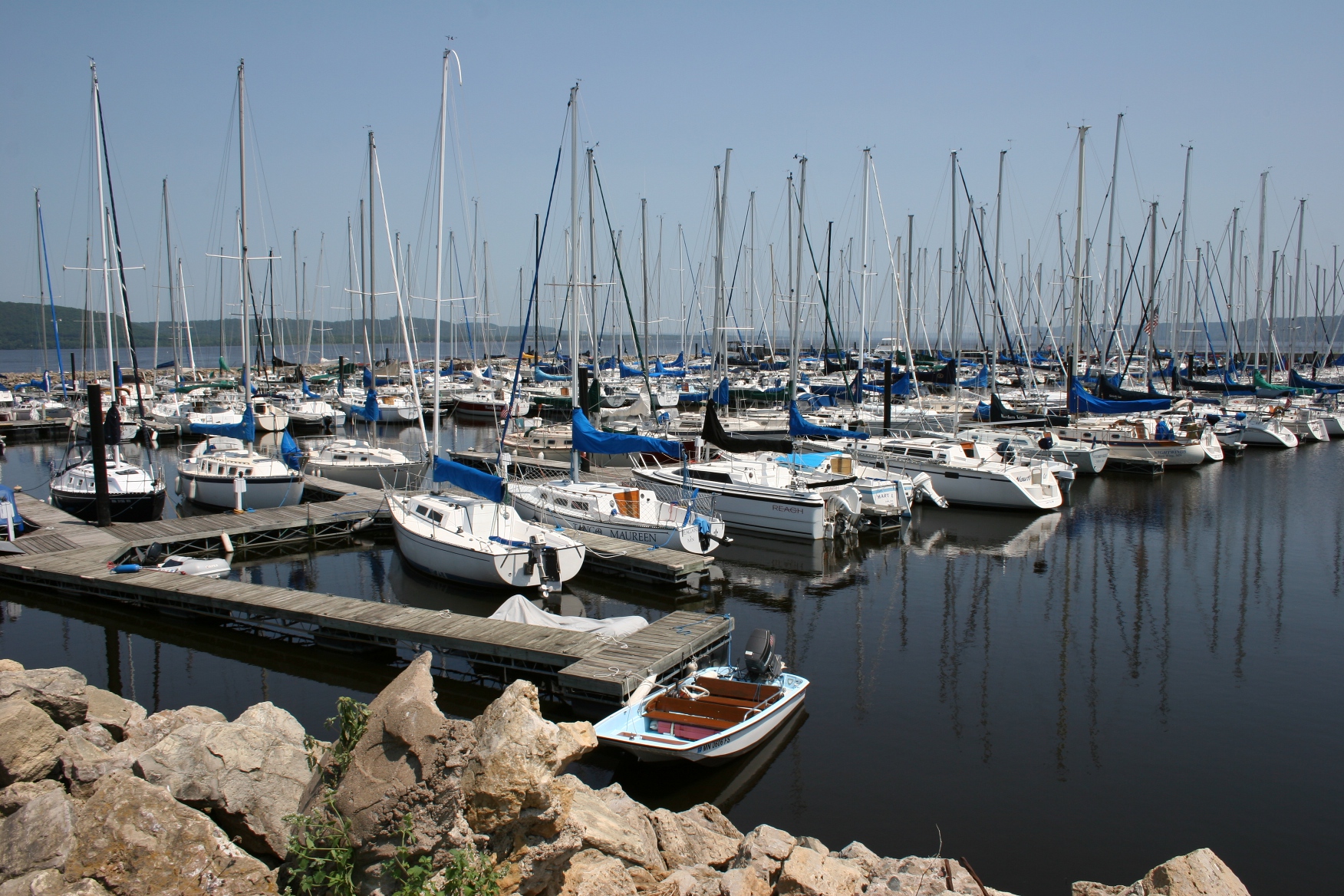 The sweet surprise GeoNiche at the Faribault Woolen Mill. Wear solid walking shoes as you will need to walk over rocks (not the ones photographed here) to reach this art treasure. Amato encourages finders to sign the logbook tucked into a plastic bag behind “Seamstresses.” Photo by Audrey Kletscher Helbling