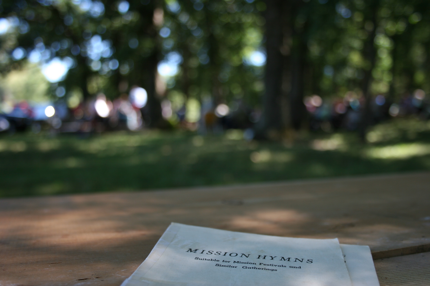 While guest speakers change from year to year, the music remains constant with worshipers singing hymns from the pocket-size Mission Hymns Suitable for Mission Festivals and Similar Gatherings (out of print for 80 years).