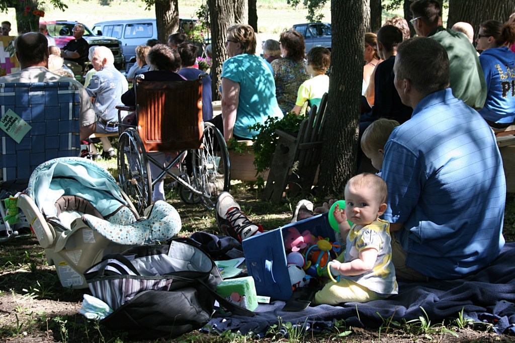 Baby Jaci sat with her dad, Mike, and brother, Bales, during the worship service.