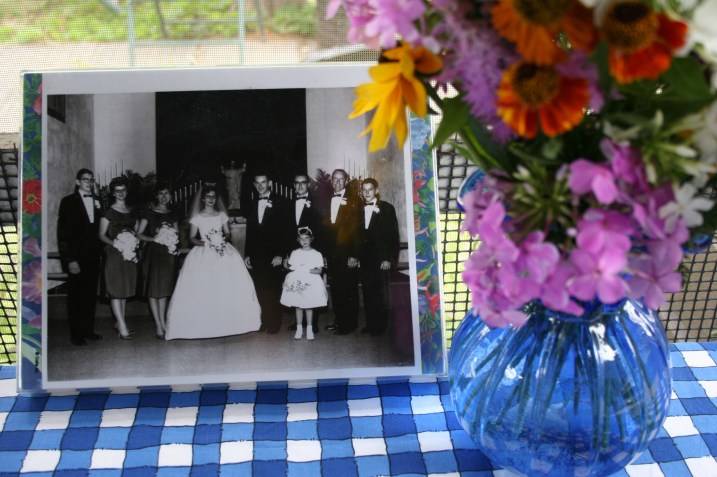 A bridal party photo from Aunt Rae and Uncle Bob’s August 18, 1962, wedding. I’m the flower girl.