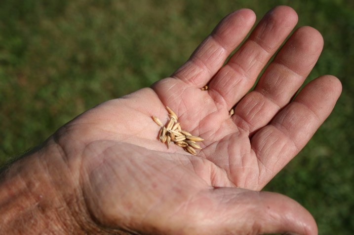 GRAYDEN MOORHOUSE unfurls his palm, revealing some two dozen oat kernels before dropping several into my hand.