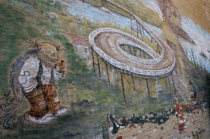 In Oliver’s Grove 1819, a downtown park, I found this mural of trolls and the old spiral bridge which once crossed over the Mississippi from Hastings to Wisconsin. Hastings was originally called Oliver’s Grove after Lt. William G. Oliver who arrived here in 1819.