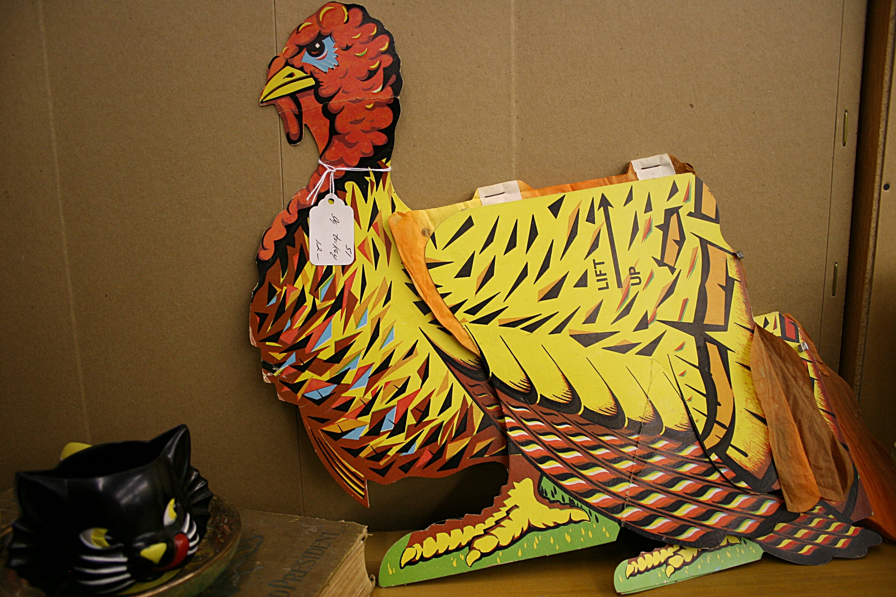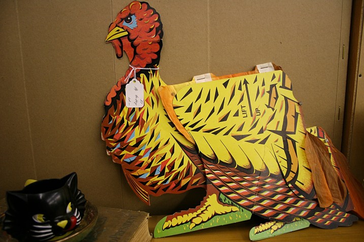 A vintage turkey decoration for the table, a few booths over from that Halloween costume.