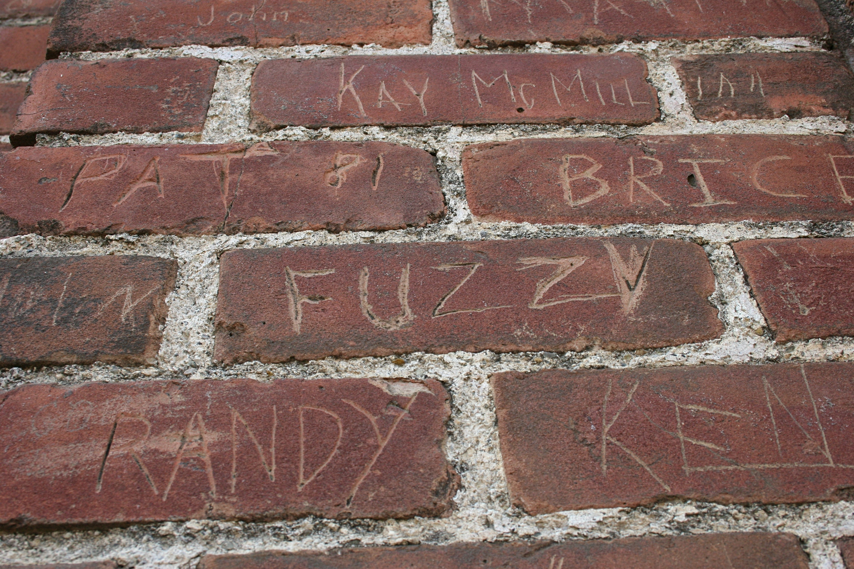 One of the more unusual finds in Webster was this graffiti etched into brick on a downtown building. Names covered several separate sections of wall. I photographed this particular section because of the name Randy (my husband’s name) and “FUZZY,” which was the nickname for one of his sisters. No, they did no etch their names here. Anyone know the story behind all of this downtown graffiti?