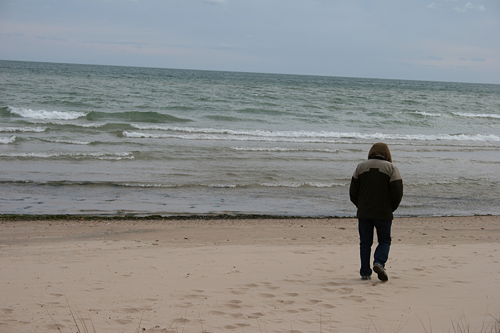 The hearty breakfast my husband ordered, even though the hour was well past breakfast: two organic eggs, multigrain toast, hashbrowns and kielbasa. He broke the egg yolks before I photographed his meal.