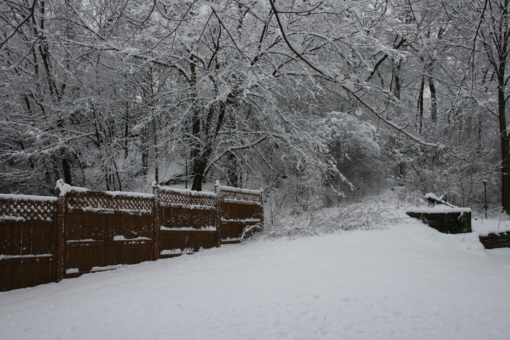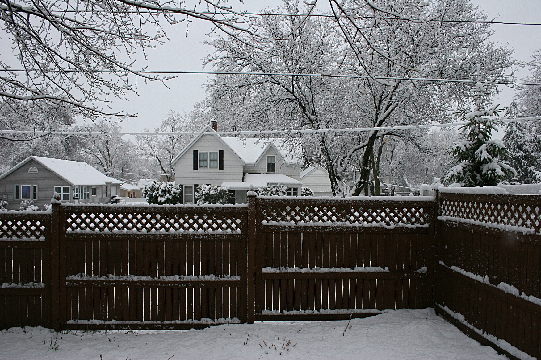 Note, again, the sagging power lines in this shot taken from my backyard looking toward my neighbor’s house across Willow Street.
