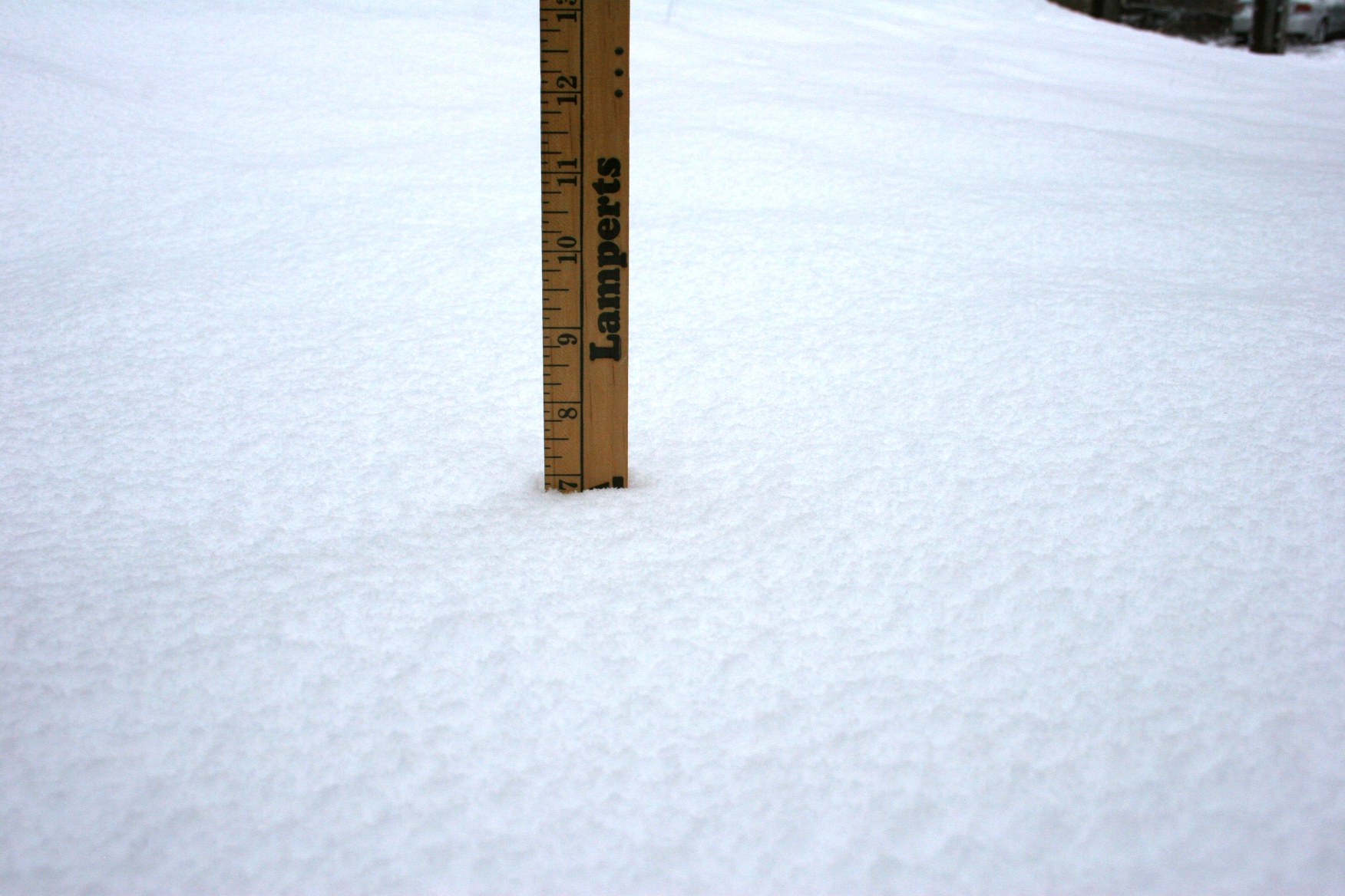 Our measurements showed seven inches. I expect we got closer to a a foot of snow since it began falling Wednesday afternoon.