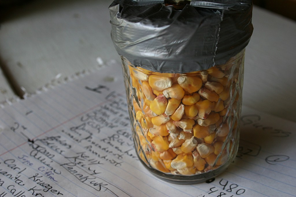 Guess the number of corn kernels in the duct taped jar and win a prize.