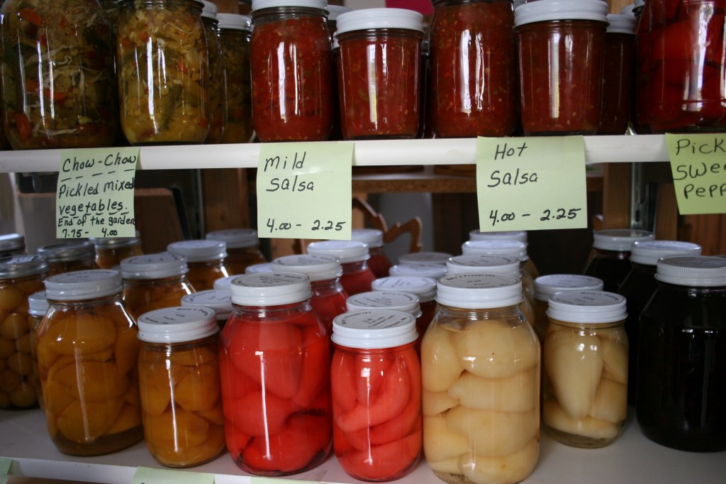 Jars of canned goods line the shelves in Mary’s shop.