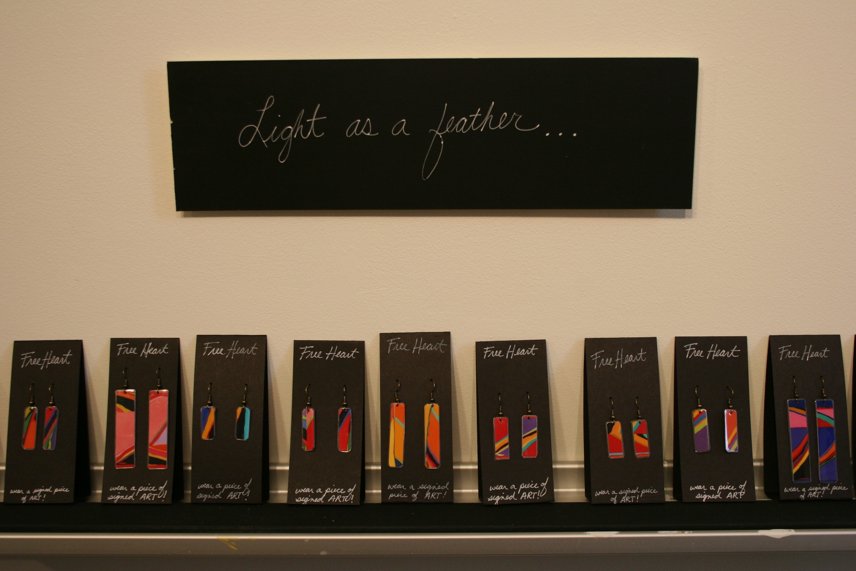 After her marriage ended and not wanting to take back her maiden name, she chose the name Free Heart. It reflects who she is, she says. And I can see that. In her art. Hear that in her enthusiasm for painting these bold feathers, uniquely her own, uniquely carrying this artist on her journey through life and art.