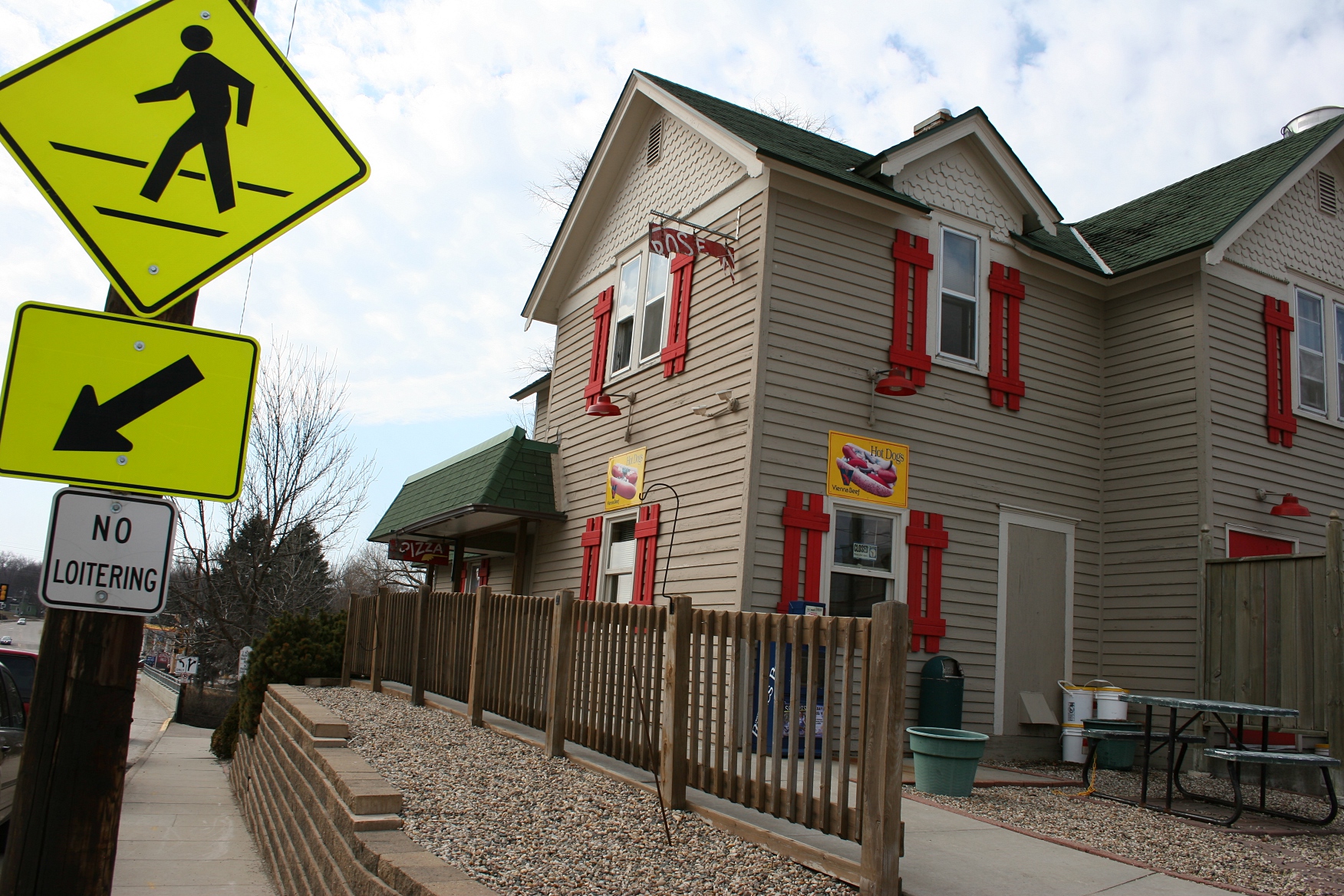 The building that houses the ice cream shop and Rose Street Pizzeria. Lots of loitering going on down the sidewalk to the right at the walk-up ice cream window order area and patio.